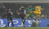 Mats Hummels dari Dortmund, kanan, mencetak gol pembuka timnya pada pertandingan sepak bola leg kedua semifinal Liga Champions antara Paris Saint-Germain dan Borussia Dortmund di stadion Parc des Princes di Paris, Prancis, Rabu, (8/5/2024) dini hari WIB. (FOTO : AP Photo/Frank Augstein)