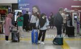 Sejumlah calon penumpang bersiap menuju peron untuk menaiki kereta di Stasiun Gambir, Jakarta, Rabu (8/5/2024). (FOTO : Republika/Putra M. Akbar)