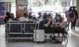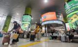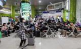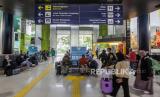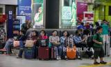 Sejumlah calon penumpang menunggu jadwal keberangkatan kereta di Stasiun Gambir, Jakarta, Rabu (8/5/2024). (FOTO : Republika/Putra M. Akbar)