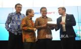 Direktur Utama Allianz Life Syariah Indonesia, Achmad K. Permana, founder DoctorSHARE Lie A. Dharmawan, Menteri Kesehatan Republik Indonesia Budi Gunadi Sadikin, Country Manager dan Direktur Utama Allianz Life Indonesia Alexander Grenz (dari kiri) berbincang saat membuka Public Forum: Accelerating Healthcare for Indonesia’s Remote Island Communities (Percepatan Pelayanan Kesehatan untuk Masyarakat di Pulau-pulau Terpencil di Indonesia) di Jakarta, Rabu (8/5/2024). (FOTO : Dok.Republika)