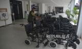Petugas menata kursi roda untuk jamaah calon haji di Asrama Haji Embarkasi Jakarta-Bekasi, Jawa Barat, Jumat (10/5/2024). Asrama Haji Embarkasi Jakarta-Bekasi sudah siap menyambut kedatangan para jemaah calon haji. Berbagai fasilitas telah disiapkan untuk menyambut kedatangan jemaah di antaranya kamar tidur, kursi roda, ruang makan serta sejumlah fasilitas lainnya. Dijadwalkan kloter pertama akan tiba di Asrama tersebut pada besok Sabtu (11/5/2024). Embarkasi Asrama Haji Jakarta-Bekasi akan melayani sebanyak 63 kloter. (FOTO : Republika/Prayogi)