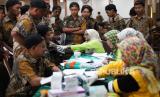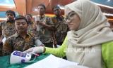 REPUBLIKA.CO.ID, SURABAYA -- Petugas medis melakukan pemeriksaan kesehatan kru dapur di Asrama Haji Embarkasi Surabaya (AHES), Surabaya, Jawa Timur, Jumat (10/5/2024).