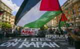 REPUBLIKA.CO.ID, NAPLES. -- Anggota kelompok Jaringan Mahasiswa untuk Palestina melakukan protes di luar kantor pusat perusahaan pelayaran dan logistik Israel, di Naples, Italia, (10/5/2024).
