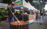 Pedagang mengaduk dodol yang akan dijual saat Lebaran Tenabang 2024 di depan Kantor Kecamatan Tanah Abang, Jakarta, Sabtu (11/5/2024). Lebaran Tenabang merupakan gelaran tahunan yang menampilkan berbagai kesenian, perlombaan dan makanan tradisional Betawi serta bazar UMKM. Lebaran Tenabang 2024 kali ini mengusung tema Sukses Tenabang Untuk Indonesia (FOTO : Republika/Prayogi)