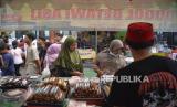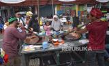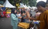 Pengunjung membeli aneka makanan yang dijual saat Lebaran Tenabang 2024 di depan Kantor Kecamatan Tanah Abang, Jakarta, Sabtu (11/5/2024). Lebaran Tenabang merupakan gelaran tahunan yang menampilkan berbagai kesenian, perlombaan dan makanan tradisional Betawi serta bazar UMKM. Lebaran Tenabang 2024 kali ini mengusung tema Sukses Tenabang Untuk Indonesia (FOTO : Republika/Prayogi)