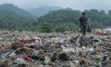 Seorang anak bermain di antara tumpukan sampah di Pantai Cibutun Loji, Desa Sangrawayang, Simpenan, Kabupaten Sukabumi, Jawa Barat, Sabtu (11/5/2024). Menurut warga setempat, sudah sepekan terakhir sampah rumah tangga yang terbawa arus laut tersebut menumpuk di pesisir pantai yang selain mencemari lingkungan juga menghambat aktivitas perahu nelayan yang akan melaut. (FOTO : ANTARA FOTO/Henry Purba)