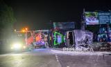 REPUBLIKA.CO.ID, SUBANG. -- Kecelakaan yang melibatkan bus pariwisata di Desa Palasari, Kecamatan Ciater, Kabupaten Subang, Jawa Barat, Sabtu (11/5/2024).