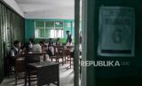 Pelajar melihat suasana jalan dari jendela di SMK Lingga Kencana, Depok, Jawa Barat, Senin (13/5/2024). Pasca kecelakaan bus rombongan pelajar di Ciater, Subang, Jawa Barat, yang menewaskan 11 orang tersebut, sekolah itu tetap melaksanakan kegiatan belajar mengajar seperti biasa meskipun sedang dalam masa berkabung. (FOTO : Republika/Putra M. Akbar)