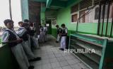 Pelajar beristirahat usai mengikuti ujian sekolah di SMK Lingga Kencana, Depok, Jawa Barat, Senin (13/5/2024). Pasca kecelakaan bus rombongan pelajar di Ciater, Subang, Jawa Barat, yang menewaskan 11 orang tersebut, sekolah itu tetap melaksanakan kegiatan belajar mengajar seperti biasa meskipun sedang dalam masa berkabung. (FOTO : Republika/Putra M. Akbar)