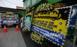 Pelajar berjalan di dekat karangan bunga di SMK Lingga Kencana, Depok, Jawa Barat, Senin (13/5/2024). Pasca kecelakaan bus rombongan pelajar di Ciater, Subang, Jawa Barat, yang menewaskan 11 orang tersebut, sekolah itu tetap melaksanakan kegiatan belajar mengajar seperti biasa meskipun sedang dalam masa berkabung. (FOTO : Republika/Putra M. Akbar)