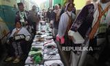 REPUBLIKA.CO.ID, SURABAYA. -- Jamaah calon haji menuju gedung Muzdalifah usai turun dari bus di Asrama Haji Embarkasi Surabaya (AHES), Surabaya, Jawa Timur, Senin (13/5/2024).