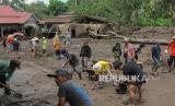 REPUBLIKA.CO.ID, TANAH DATAR. -- Pencarian korban banjir lahar dingin Gunung Marapi di Manunggal, Kabupaten Tanah Datar, Sumatera Barat, Senin (13/5/2024).