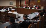 REPUBLIKA.CO.ID, JAKARTA -- Terdakwa kasus dugaan korupsi pembangunan Gereja Kingmi Mile 32 di Mimika, Papua, Budiyanto Wijaya, Totok Suharto, Arif Yahya dan Gustaf Urbanus Patandianan mengikuti sidang pembacaan tuntutan di Pengadilan Tipikor, Jakarta, Rabu (15/5/2024).