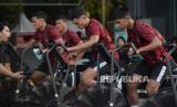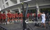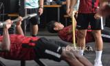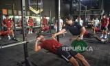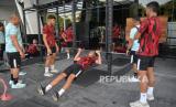 Sejumlah pemain Timnas U-20 Indonesia mengikuti latihan fisik di pusat kebugaran Empire Fit Club, Kompleks Gelora Bung Karno, Senayan, Jakarta, Rabu (15/5/2024). Sesi latihan penggenjotan fisik ini langsung diawasi oleh Kepala Pelatih Timnas Indonesia U-20, Indra Sjafri. Sebanyak 30 pesepak bola mengikuti pemusatan latihan (TC) sebagai persiapan mengikuti Toulon Tournament 2024 di Prancis, Piala AFF U-19 2024 dan Kualifikasi Piala Asia U-20 2025. (FOTO : Republika/Prayogi)
