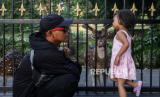 Seorang anak melihat rusa dari balik pagar Istana Bogor di Kota Bogor, Jawa Barat, Rabu (15/5/2024). Rusa yang merupakan salah satu hewan ikonik Kota Bogor tersebut merupakan koleksi dari Istana Kepresidenan Bogor yang kini jumlahnya mencapai lebih dari 800 ekor. Keberadaan rusa yang berkeliaran bebas di halaman Istana Bogor itu menjadi daya tarik hiburan murah meriah bagi masyarakat yang ingin melihatnya dari balik pagar. (FOTO : Republika/Putra M. Akbar)