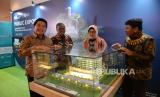 Direktur Utama Bank Syariah Indonesia (BSI) Hery Gunardi (kiri) didampingi oleh Direktur Treasury & International Banking BSI Moh Adib, Direktur Kepatuhan & SDM BSI Tribuana Tunggadewi, dan Wakil Direktur Utama Bob Tyasika Ananta (dari kiri) melihat maket gedung BSI Banda Aceh usai meresmikan instrumen keuangan syariah Sustainability Sukuk BSI atau Sukuk Mudharabah Keberlanjutan di Jakarta, Rabu (15/5/2024). BSI menerbitkan instrumen keuangan syariah yang fokus terhadap ESG (environment, social, governance) berupa Sustainability Sukuk BSI atau Sukuk Mudharabah Keberlanjutan. (FOTO : Dok Republika)