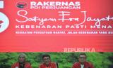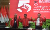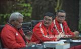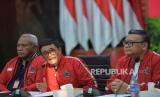 REPUBLIKA.CO.ID, JAKARTA -- Ketua DPP PDIP Bidang Ideologi dan Kaderisasi sekaligus Steering Committee (SC) Rakernas PDIP ke V Djarot Saiful Hidayat bersama Ketua DPP PDIP Bidang Kehormatan Komarudin Watubun dan Ketua DPP PDIP Bidang Pemuda dan Olahraga Eriko Sotarduga menyampaikan keterangan pers terkait pelaksanaan Rakernas PDIP V di Kantor DPP PDIP, Jakarta, Kamis (16/5/2024).