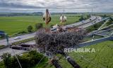 REPUBLIKA.CO.ID, FRANKFURT. -- Keluarga bangau bersarang di tiang listrik di atas jalan raya di pinggiran Frankfurt, Jerman, Kamis, (16/5/2024).