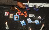 Seorang wartawan meletakkan kartu identitasnya saat menggelar aksi tolak Revisi Undang-Undang (RUU) Penyiaran di Bundaran DPRD Jember, Jawa Timur, Kamis (16/5/2024). Wartawan yang tergabung dalam organisasi Aliansi Jurnalis Independen (AJI), Ikatan Jurnalis Televisi Indonesia (IJTI) dan Persatuan Wartawan Indonesia (PWI) menolak RUU Penyiaran karena sejumlah pasal di dalamnya mengancam kebebasan pers di Indonesia. (FOTO : ANTARA FOTO/Seno)