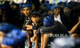 Anak Suku Badui beristirahat usai berjalan kaki ke Pendopo Kabupaten Lebak, Rangkasbitung, Lebak, Banten, Jumat (17/5/2024). Gelaran tradisi Seba Badui yang diikuti sebanyak 1.500 warga Suku Badui akan dilaksanakan pada 17-19 Mei 2024.  (FOTO : ANTARA FOTO/Muhammad Bagus Khoirunas)