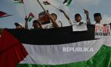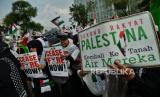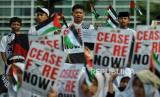 Aksi menyerukan Israel untuk menghentikan serangan ke Palestina..