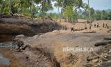 Tim SAR gabungan bersama relawan melakukan pencarian korban banjir bandang di Simpang Manunggal, Nagari Limo Kaum, Tanah Datar, Sumatera Barat, Ahad (19/5/2024). Pencarian terhadap 13 korban yang hilang akibat banjir bandang di kabupaten itu masih dilakukan, namun tim terkendala dengan wilayah pencarian yang meluas hingga ke kabupaten lain dan kondisi lumpur yang sudah mengeras.  (FOTO : ANTARA FOTO/Iggoy el Fitra)