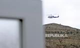 REPUBLIKA.CO.ID, AZERBAIJAN TIMUR. -- Foto yang disediakan oleh Kantor Berita Republik Islam, IRNA, helikopter yang membawa Presiden Iran Ebrahim Raisi lepas landas di perbatasan Iran dengan Azerbaijan setelah Presiden Raisi dan timpalannya dari Azeri Ilham Aliyev meresmikan bendungan Qiz Qalasi, atau Kastil Gadis di Azeri, Iran , Ahad (19/5/2024).