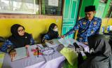 Guru melayani orang tua murid mengajukan pembuatan akun Penerimaan Peserta Didik Baru (PPDB) di SD Grogol Selatan 08, Kebayoran Lama, Jakarta, Senin (20/5/2024). Pemerintah Provinsi DKI Jakarta mulai membuka prapendaftaran PPDB Jakarta 2024 yang harus dilakukan para peserta didik baru sebelum mendaftar PPDB Jakarta 2024 yang rencananya akan dibukan pada Juni 2024. (FOTO : Republika/Putra M. Akbar)