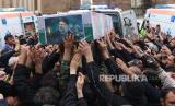 REPUBLIKA.CO.ID, TABRIZ -- Warga Iran berkumpul untuk memberikan penghormatan terhadap Presiden Ebrahim Raisi dan pejabat tinggi Iran lainnya, yang tewas dalam kecelakaan helikopter saat rangkaian prosesi upacara pemakaman di Kota Tabriz, Iran, Selasa (21/5/2024).
