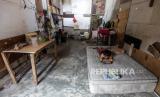 Warga Kampung Susun Bayam beraktivitas di hunian sementara di Jalan Tongkol, Pademangan, Jakarta, Rabu (22/5/2024). Sebanyak 35 Kartu Keluarga (KK) pindah ke hunian sementara dari Kampung Susun Bayam imbas pengusiran yang dilakukan oleh PT Jakarta Propertindo (Jakpro). (FOTO : Republika/Putra M. Akbar)