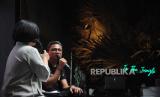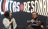 Perwakilan Lintas Resonan Wendi Putranto (kanan) berbicara saat akan di gelar acara musik Lintas Resonan di Jakarta, Rabu (22/5/2024). (FOTO : Dok.Republika)