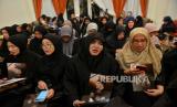 REPUBLIKA.CO.ID, JAKARTA. -- Warga dan tamu undangan memanjatkan doa saat mengikuti kegiatan doa dan tahlilan atas wafatnya Presiden Iran Ebrahim Raisi di kediaman Duta Besar Iran untuk Indonesia di Jakarta, Rabu (22/5/2024).