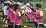 REPUBLIKA.CO.ID, JAKARTA. -- Sejumlah pesepak bola Timnas putri Indonesia berlatih saat pemusatan latihan (TC) di Lapangan ABC, Senayan, Jakarta, Rabu (22/5/2024).