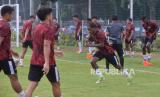 Sejumlah pemain Timnas U-20 Indonesia mengikuti sesi latihan di Lapangan ABC, Kompleks Gelora Bung Karno, Senayan, Jakarta, Jumat (24/5/2024). Timnas U-20 Indonesia menjalani sesi latihan sekaligus persiapan akhir sebelum berangkat ke Italia dan Prancis. Timnas U-20 Indonesia akan berlaga dalam Turnamen Toulon di Prancis namun jelang turnamen tersebut, Garuda Muda akan melakukan pemusatan latihan di Como, Italia. (FOTO : Republika/Prayogi)