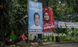 Anak-anak duduk dibawah spanduk tokoh yang mencalonkan diri dalam Pemilihan Wali Kota dan Wakil Walikota Bogor 2024 di Jalan Jenderal Ahmad Yani, Kota Bogor, Jawa Barat, Jumat (24/5/2024). Meskipun belum memasuki masa sosialisasi jelang Pemilihan Wali Kota dan Wakil Walikota Bogor 2024, sudah banyak alat peraga kampanye berupa spanduk dan poster yang terpasang di jalanan Kota Bogor. Spanduk dan poster yang menampilkan bakal calon Wali Kota dan Wakil Walikota Bogor tersebut terpasang di tempat yang tidak seharusnya sehingga mengganggu keindahan estetika perkotaan. (FOTO : Republika/Putra M. Akbar)