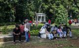 Pengunjung beristirahat saat berwisata di Kebun Raya Bogor, Kota Bogor, Jawa Barat, Jumat (24/5/2024). Libur Hari Raya Waisak, cuti bersama serta libur akhir pekan dimanfaatkan oleh warga untuk mengunjungi destinasi wisata Kebun Raya Bogor yang memiliki ribuan koleksi tanaman. Kebun Raya Bogor menargetkan 60.000 pengunjung pada libur panjang yang dibarengi dengan HUT Kebun Raya Bogor ke-207. (FOTO : Republika/Putra M. Akbar)
