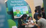Pengunjung sedang memeriksa gula darah di Bango Less Sugar Fit Festival di Main Atrium Gandaria City, Jakarta, Jumat (24/5/2024). (FOTO : Dok.Republika)