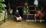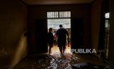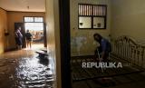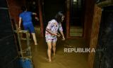Warga membersihkan endapan lumpur di rumahnya yang terendam banjir di Jalan Kemuning Dalam 4, Pejaten Timur, Pasar Minggu, Jakarta Selatan, Sabtu (25/5/2024). Sebanyak sekitar 18 rumah terendam banjir sejak dini hari sekitar pukul 02.00 WIB yang diduga akibat luapan sungai Ciliwung. Saat ini banjir di lokasi tersebut berangsur surut dari sebelumnya ketinggian air mencapai 2,6 meter, kini tinggal sekitar 45 centimeter. (FOTO : Republika/Thoudy Badai)