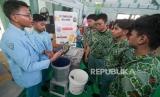 Santri menjelaskan kepada siswa tentang produk D Composer Machinel yang dipamerkan pada acara Progresif Science and Innovation Exhibition (PSIE) di Gedung Olah Raga (GOR) SMA Progresif Bumi Shalawat, Sidoarjo, Jawa Timur, Sabtu (25/5/2024). Pameran yang menampilkan karya santri pondok pesantren tersebut bertujuan untuk mengembangkan inovasi dan kreativitas di di bidang IPTEK. ANTARA (FOTO : FOTO/Umarul Faruq )