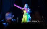 Penyanyi Mahalini tampil menghibur dalam gelaran BNI Java Jazz Festival 2024 di Jiexpo Kemayoran, Jakarta, Sabtu (25/5/2024). Mahalini tampil pada hari kedua BNI Java Jazz Festival 2024 dengan membawakan sejumlah lagu hitsnya seperti Sial, Sisa Rasa dan Mati-matian. Dalam penampilannya, penonton berharap Mahalini berkolaborasi dengan suaminya Rizky Febian, namun kolaborasi itu tak terwujud pada kesempatan ini. Penyanyi jebolan Indonesian Idol itu justru berkolaborasi dengan penyanyi Teddy Adhitya dan Adrian Khalif dengan membawakan lagu Pecahkan Hati, Buru-buru dan Sialan. BNI Java Jazz Festival 2024 kali ini merupakan panggung pertama Mahalini setelah menikah dengan Rizky Febian. (FOTO : Republika/Thoudy Badai)