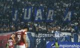 Bobotoh (pendukung) Persib Bandung membentangkan bendera juara saat kemenangan Persib Bandung atas Madura United usai laga pertama Final Championship Series BRI-Liga 1 di Stadion Si Jalak Harupat, Kabupaten Bandung, Jawa Barat, Ahad (26/5/2024). Persib Bandung berhasil mengalahkan Madura United pada laga pertama final dengan skor telak 3-0. (FOTO : ANTARA FOTO/Novrian Arbi)