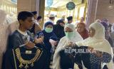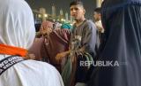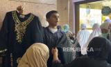 Pedagang abaya menawarkan barang dagangannya kepada jamaah haji Indonesia di sekitar masjid Nabawi, Madinah, Ahad (26/5/2024). Para pedagang abaya di sekitar Masjid Nabawi punya cara unik untuk menarik pembeli dari Indonesia. Mereka meneriakkan kata Jokowi, murah, dan seratus ribu yang jadi kata kunci efektif pedagang abaya di sekitar Masjid Nabawi. Sontak saja pedagang yang berteriak Jokowi, murah, seratus ribu, langsung diserbu ibu-ibu. Namun pedagang itu akan bersembunyi dan meninggalkan barang dagangannya ketika ada Askar yang datang. Harga satu baju abaya dijual Rp 100 ribu dan bisa bisa dibayar menggunakan uang rupiah. (FOTO : Karta/Republika)