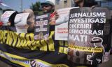 REPUBLIKA.CO.ID, JAKARTA -- Sejumlah massa yang terdiri dari organisasi profesi wartawan, pekerja kreatif dan pers mahasiswa melakukan aksi damai menolak revisi Undang-Undang Penyiaran di depan kompleks Parlemen, Senayan, Jakarta, Senin (27/5/2024).