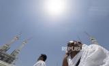 Umat Islam menutup kepalanya dari terik matahari seusai seusai berlangsung peristiwa Rashdul Qiblah atau waktu matahari tepat di atas Ka bah di Masjidil Haram, Makkah, Arab Saudi, Senin (27/5/2024). Pada momen yang terhadi pukul 12.18 waktu Arab Saudi tersebut seluruh benda yang berdiri tegak lurus akan sejajar dengan arah kiblat, hal tersebut berguna dan merupakan kesempatan bagi masyarakat yang ingin mengukur serta menegaskan kebenaran arah kiblat. (FOTO : ANTARA FOTO/Sigid Kurniawan)