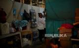 Bagunan hunian sementara warga Kampung Susun Bayam (KSB) beraktivitas di Jalan Tongkol 10, Pademangan, Jakarta Utara, Selasa (28/5/2024). Sebanyak 54 kepala keluarga di relokasi ke hunian sementara setelah dilakukan pengusiran paksa di rusun Kampung Susun Bayam sebelumnya. Salah satu warga Neneng (45) mengeluhkan tentang kondisi hunian sementara yang sudah tidak layak. Sementara, Yuli (24) berharap Ia dan keluarganya bisa kembali menempati  rusun KSB. (FOTO : Republika/Thoudy Badai)