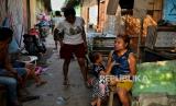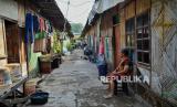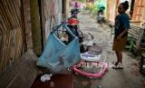 Warga Kampung Susun Bayam (KSB) beraktivitas di hunian sementara di Jalan Tongkol 10, Pademangan, Jakarta Utara, Selasa (28/5/2024). Sebanyak 54 kepala keluarga di relokasi ke hunian sementara setelah dilakukan pengusiran paksa di rusun Kampung Susun Bayam sebelumnya. Salah satu warga Neneng (45) mengeluhkan tentang kondisi hunian sementara yang sudah tidak layak. Sementara, Yuli (24) berharap Ia dan keluarganya bisa kembali menempati  rusun KSB. (FOTO : Republika/Thoudy Badai)