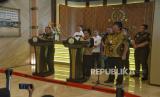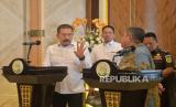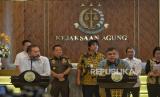 Jaksa Agung ST Burhanuddin bersama Kepala BPKP Muhammad Yusuf Ateh memberikan keterangan pers terkait Penyampaian Hasil Perhitungan Kerugian Negara (PKN) dalam Penyidikan Perkara Timah di Kejaksaan Agung, Jakarta, Rabu (29/5/2024). Kejaksaan Agung (Kejagung) Republik Indonesia mengungkapkan, nilai kerugian keuangan negara dalam perkara dugaan tindak pidana korupsi dalam tata niaga komoditas timah di wilayah Izin Usaha Pertambangan (IUP) PT Timah Tbk tahun 2015-2022, mencapai Rp 300 triliun. Angka tersebut terungkap setelah Kejaksaan Agung mendapat hasil penghitungan dari Badan Pengawasan Keuangan dan Pembangunan (BPKP). (FOTO : Republika/Prayogi)