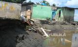 REPUBLIKA.CO.ID, KONAWE -- Warga memeriksa rumahnya yang terdampak abrasi sungai di Desa Muara Sampara, Kabupaten Konawe, Sulawesi Tenggara, Rabu (29/5/2024).