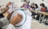 REPUBLIKA.CO.ID, JAKARTA -- Petugas memberikan instruksi kepada peserta yang mengikuti pelatihan menyulam di Tempat Kumpul Kreatif Jakarta Pusat, Johar Baru, Jakarta, Kamis (30/5/2024).