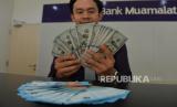REPUBLIKA.CO.ID, TANGSEL -- Teller menghitung mata uang dolar AS di kantor cabang Bank Muamalat Bintaro Jaya, Tangerang Selatan, Kamis (30/5/2024).